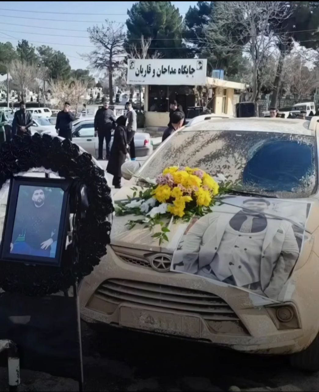 Images of Erfan Jamehshourani’s grave plot and his funeral ceremony;