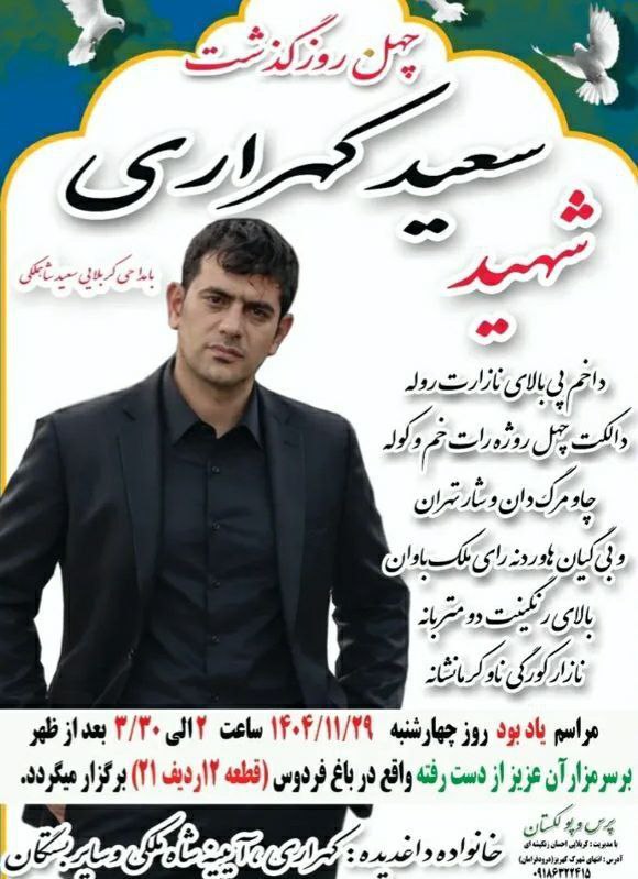 February 16, 2026; "Saeed Kohrari", a 29-year-old Kurdish youth from Kermanshah province, is the identity of another victim of the popular protests on January 9, 2026, in Tehran city, who was killed by the live ammunition fire of the repressive forces of the Islamic Republic government.