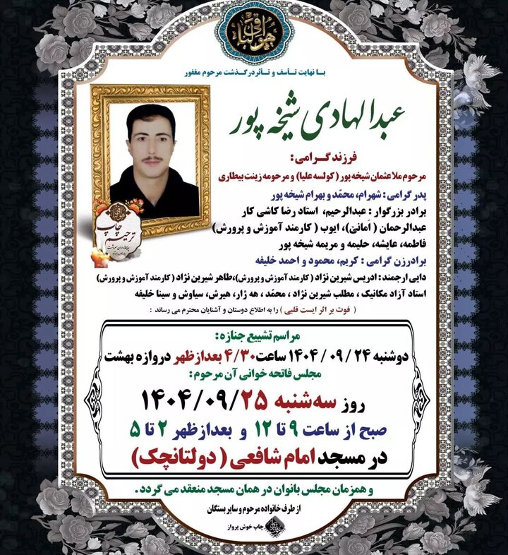 آذر ۱۴۰۴؛ طی روزهای گذشته، یک شهروند کُرد محبوس در زندان مهاباد به نام «عبدالهادی شیخەپور»، اهل سردشت که در حال سپری کردن محکومیت ۱۳ ساله خود بود، بر اثر «ایست قلبی» و در نتیجه عدم رسیدگی پزشکی جان خود را از دست داد.