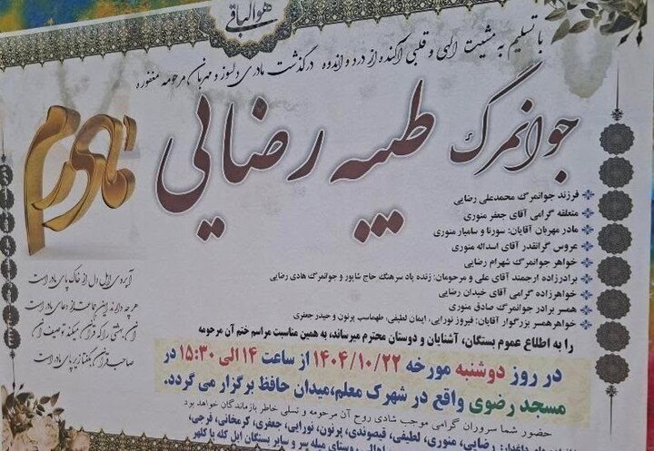 تصویر مربوط به آگهی ترحیم طیبه رضایی؛