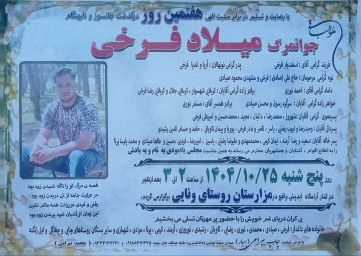 تصاویری از برگه آگهی ترحیم میلاد فرخی؛
