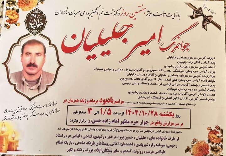 تصویری از آگهی ترحیم امیر جلیلیان؛