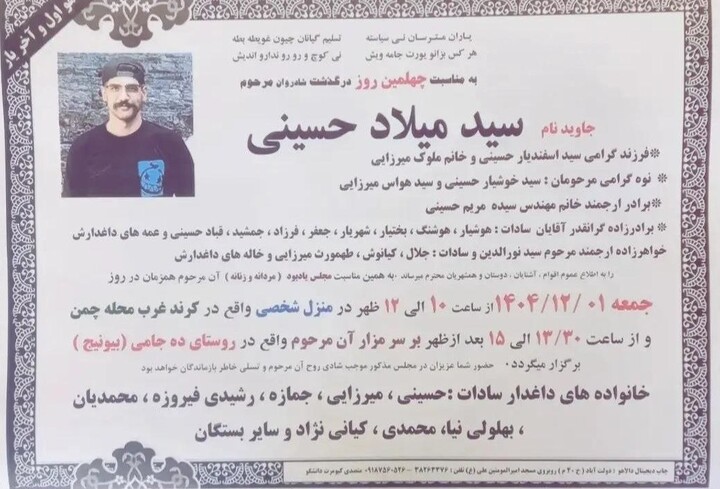 ۲۴ دی ۱۴۰۴؛ هویت یکی دیگر از جانباختگان اعتراضات مردمی کرج با نام «سید میلاد حسینی» از کُردهای یارسان اهل زرده دالاهو، برای «کُردپا» تأیید شد.